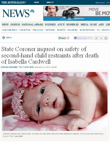 Australian screengrab of story about baby death in car crashNews coverage also skews our understanding of why bad things happen. For a breathtaking example, see this Australian news story about the tragic death of a young baby in a car crash. The report leads on the fact that the mother had apparently incorrectly used a second-hand child restraint. It is only ten paragraphs later that the report reveals the fact that the car, which was being driven by the father, crashed because it was “travelling at 118 km/h as it approached the bend, despite signage advising motorists to slow to 40 km/h.”